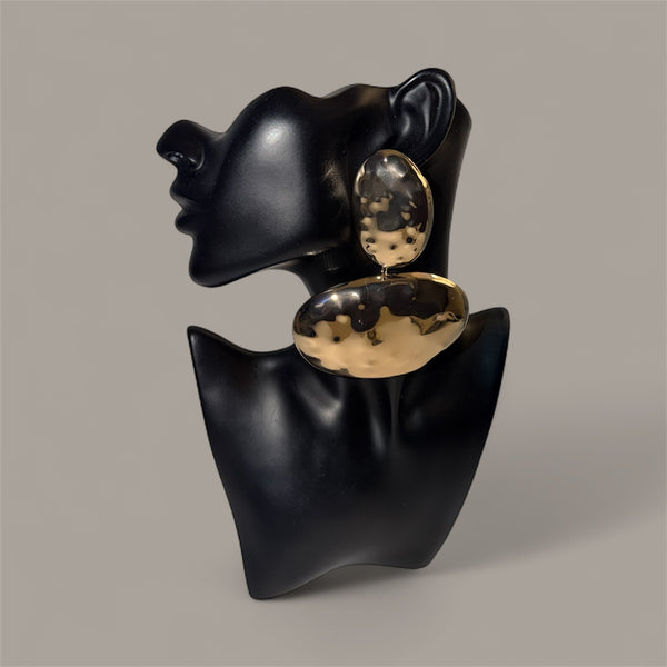 Turn heads with bold, geometric gold earrings. Textured, lightweight, and perfectly oversized your go to statement accessory for brunch, nights out, or Vegas vibes.